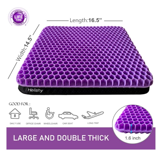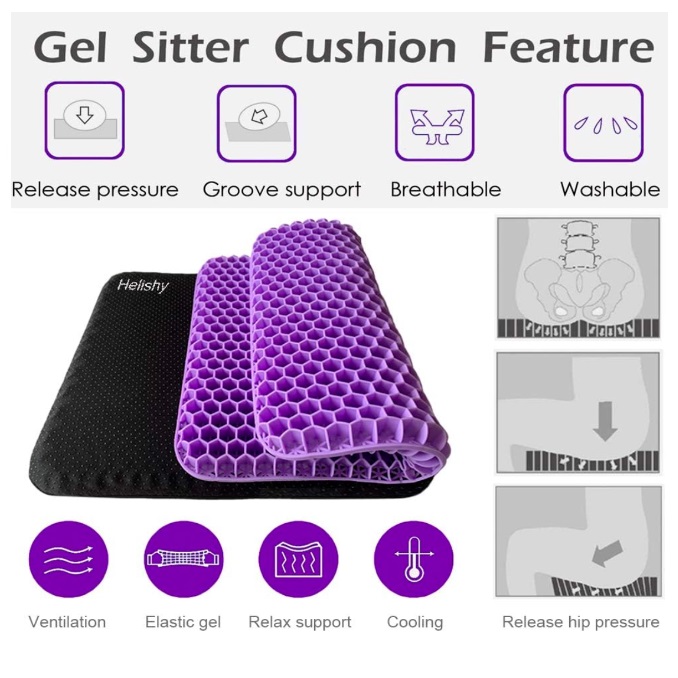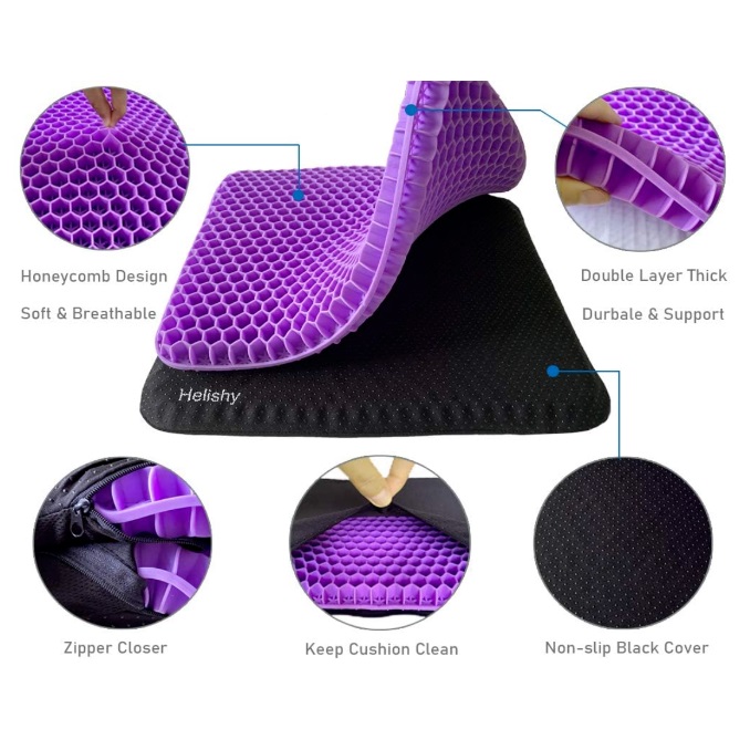 Cooling Honeycomb Structure. The seat cushion is made of premium gel material, which makes it cool to sit on and helps people who are in long sitting to deal with the heat. The honeycomb structure allows air flow, ventilation, even if sitting for a long time.